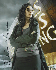 Indira Varma 10x8 signed in Black Torchwood